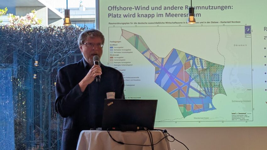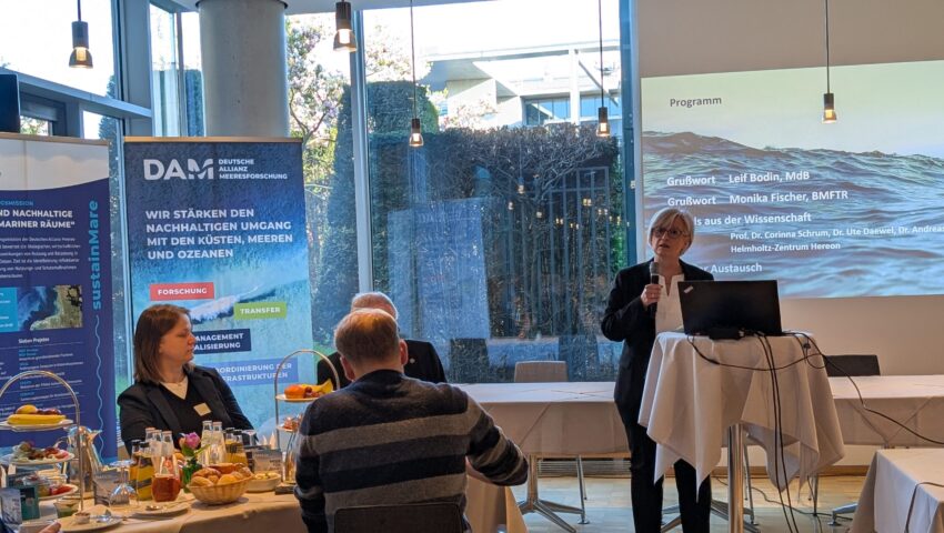 Eröffnet wurde die Veranstaltung durch ein Grußwort Leif Erik Bodin, MdB und Schirmherr der Veranstaltung. Er betonte, dass in dem begrenzten Raum der Nordsee zunehmend verschiedene Nutzungsinteressen sowie Meeresschutz aufeinanderträfen. Um zukunftsfähige Lösungen zu entwickeln, brauche es eine belastbare wissenschaftliche Grundlage. Auch Monika Fischer vom Referat Meeres-, Küsten- und Polarforschung des BMFTR BMFTR hob die Bedeutung der Küsten- und Meeresforschung als strategisches Forschungsfeld der Bundesregierung hervor und betonte den lösungsorientierten und transdisziplinären Ansatz der DAM-Forschungsmission sustainMare, in der Nutzungskonflikte analysiert und Lösungsoptionen für eine nachhaltige Nutzung von Nord- und Ostsee entwickelt werden.