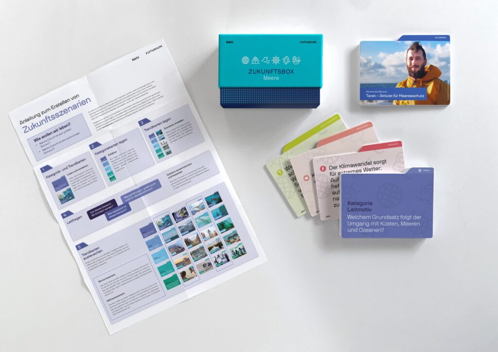 Eine Zukunftsbox Meere enthält insgesamt fünf unterschiedliche Kartensets sowie methodische Anleitungen zum Erstellen von Zukunftsszenarien. Die Materialien basieren auf Methoden der Zukunftsforschung, der Bildung für nachhaltige Entwicklung und dem Design Thinking. Seit Ende 2023 ist die Zukunftsbox Meere als offizielle Aktivität der UN-Dekade der Meeresforschung für nachhaltige Entwicklung registriert.